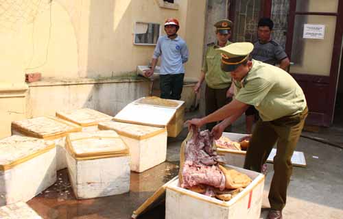Trước đó, sáng 17/3, kiểm tra một xe tải chạy trên quốc lộ 1A đoạn qua xã Quảng Phong (huyện Quảng Xương, Thanh Hoá), nhà chức trách địa phương phát hiện 9 thùng xốp đựng hơn 650 kg thịt và đuôi lợn. Tất cả đều là thịt lợn nái đã được thui sơ chế, lọc xương và mỡ, còn nguyên da.