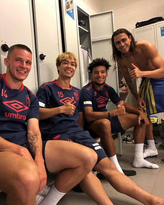 Bên cạnh đó, các đồng đội ở Bỉ cũng thường xuyên đăng tải khoảnh khắc tập luyện hay vui chơi cùng Công Phượng. Hậu vệ Pol Garcia Tena chia sẻ hình ảnh chân sút gốc Đô Lương e thẹn khoác tay thủ môn người Nhật Bản Daniel Schmidt.