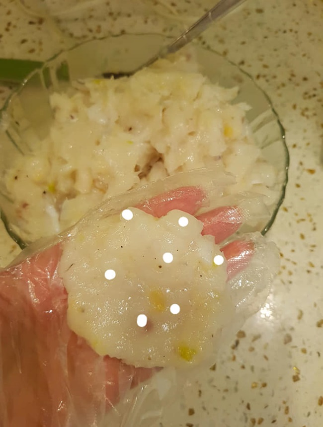 - Sau khi được hỗn hợp chả thì nặn bằng lòng bàn tay.
