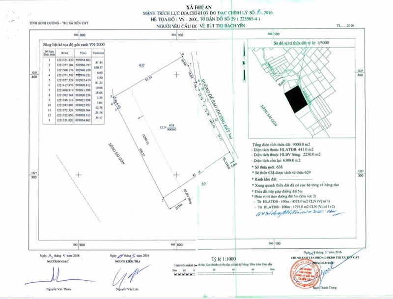Thửa đất trên được cấp Giấy chứng nhận quyền sử dụng đất ngày 19/9/2016, thuộc bản đồ tờ bản đồ số 29, thửa đất số 638. Trong đó có khoảng 2.250m2 đất thuộc hành lang bảo vệ sông và 441m2 đất đê bao. Theo quy hoạch thì đây lại là đất trồng cây lâu năm, không được phép xây dựng. Người được cho là chủ sở hữu khu đất này là của một người phụ nữ sống trên địa bàn đã có hiện tượng đổ đất đá san lấp, lấn ra tận mép bờ sông Sài Gòn với diện tích lên đến hàng nghìn mét vuông?