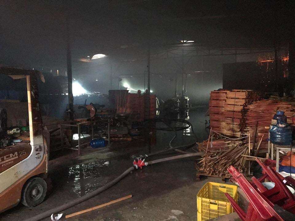 Do trong xưởng chứa nhiều gỗ, vật liệu dễ cháy nên chỉ sau ít phút đám cháy đã bao trùm toàn bộ xưởng.