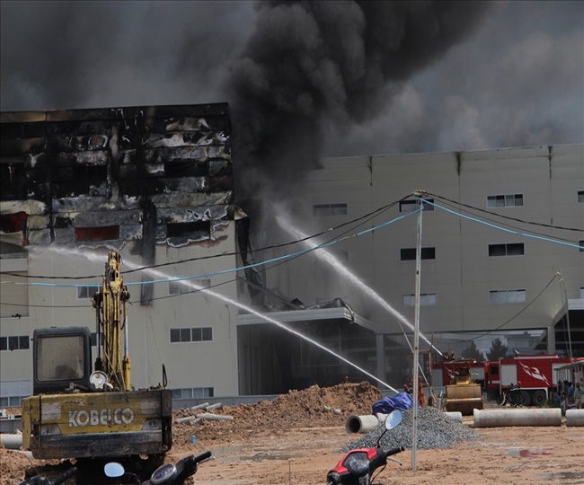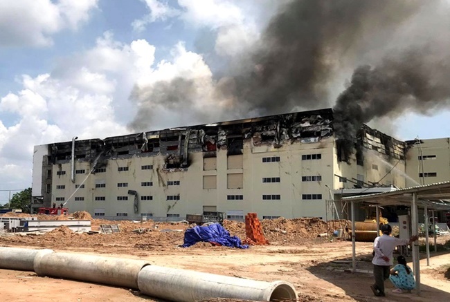 Khoảng 11h ngày 1/11, các công nhân đang làm việc thì bất ngờ hỏa hoạn xảy ra ở tầng 4 của nhà xưởng rộng 16.000m2.