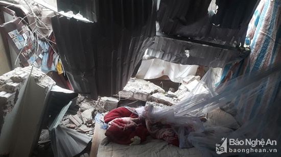 Ông Nguyễn Bá Bình, Phó chủ tịch UBND phường Quỳnh Thiện cho biết, ở ngôi nhà thứ 3, xe tải đâm sập tường đổ ngay chỗ giường ngủ của 3 mẹ con. Rất may có tấm tôn chắn bớt đá nên chỉ bị xây xát nhẹ.