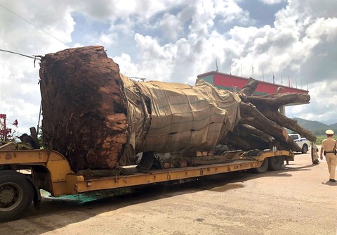 Cụ thể, vào sáng cùng ngày, trong lúc tuần tra trên Quốc lộ (QL) 19, đoạn thuộc địa bàn huyện Tây Sơn (Bình Định), tổ tuần tra kiểm soát Phòng CSGT Công an tỉnh Bình Định phát hiện xe đầu kéo BKS 43C-19038 kéo theo rơ móc BKS 43R-02127, do Đinh Công Vinh (45 tuổi; ngụ phường Hòa Phát, quận Cẩm Lệ, TP Đà Nẵng) điều khiển theo hướng Gia Lai về Bình Định, chở theo 1 cây đa sộp có kích thước "siêu khủng" nên ra tín hiệu dừng xe kiểm tra.