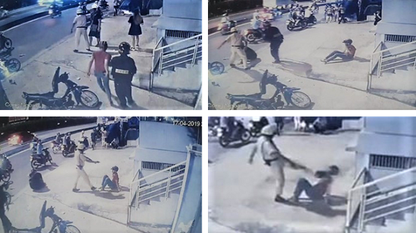 Theo mô tả trong video, sau khi va chạm, một CSGT đi đến và đánh một thanh niên rồi rút súng chĩa vào mặt. Sau đó, CSGT này tiếp tục đạp vào mặt một thanh niên khác.