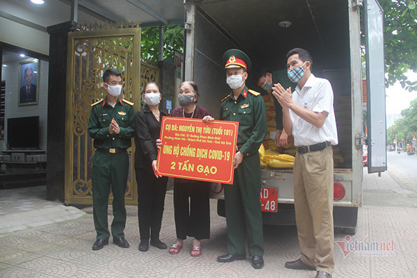Cụ bà Nguyễn Thị Tửu (101 tuổi, trú thành phố Hà Tĩnh) vừa dùng tiền tiết kiệm mua 2 tấn gạo tặng bộ đội chống dịch Covid-19.