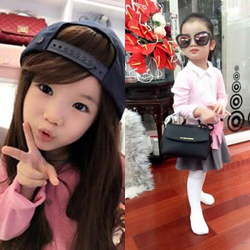 Khi lên 4 tuổi, bé hay theo mẹ tới cửa hàng và rất thích lại gần gian trưng bày túi xách, mắt kính. Miu Miu tự đi ra một góc, vừa cầm túi, vừa đeo kính và chụp hình bằng điện thoại của mẹ.