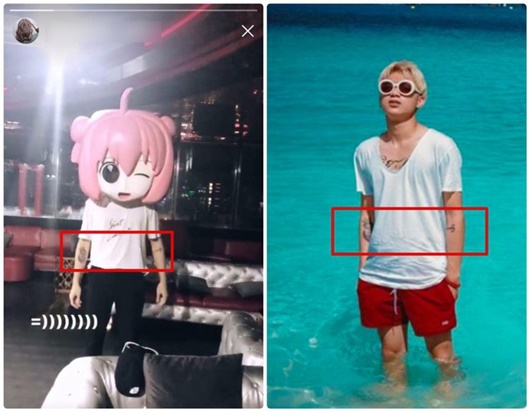 Cặp đôi rất thích cực tương tác trên mạng xã hội. N.H.N cũng từng đăng tải hình ảnh người đàn ông bí ẩn có hình xăm ở tay giống hệt Soobin Hoàng Sơn. |
