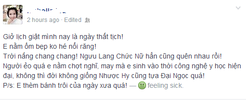 | Rất nhiều dòng tâm trạng của các bạn trẻ hôm nay đều có liên quan tới lễ Thất tịch. |