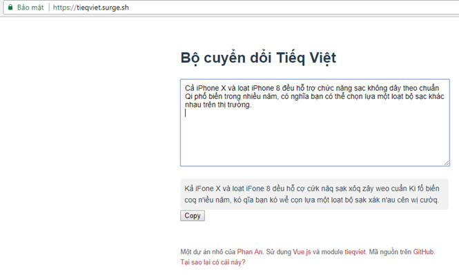 Trong khi sự việc còn đang lùm xùm thì một lập trình viên tên Phan An đã chia sẻ lên trang Github - một dịch vụ cung cấp kho lưu trữ mã nguồn Git dựa trên nền web cho các dự án phát triển phần mềm, một công cụ có thể tự động chuyển được nội dung chữ viết hiện tại sang ''ngôn ngữ'' mới. Hiện tại, công cụ này đang được chia sẻ rầm rộ tại địa chỉ: tieqviet.surge.sh.