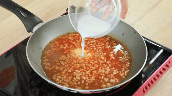 - Bước 5: Hòa tan bột năng với 25ml nước lọc. Đổ từ từ bột năng vào chảo thịt, khuấy đều sau đó đun cho sốt sánh lại là được.