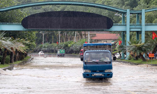 Tại TP.Cẩm Phả, trên Quốc lộ 18, đoạn qua cổng trụ sở Đài hoá thân An Lạc Viên, phường Quang Hanh cũng đã bị ngập sâu 20-30cm và kéo dài đến 200m.
