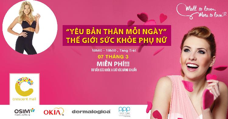 Đặc biệt, liên tục từ 7-15/3, “Ngày Hội Phái Đẹp” với muôn vàn ưu đãi hấp dẫn sẽ diễn ra ngay tại tầng Trệt của trung tâm, nơi các nhãn hàng mỹ phẩm và dụng cụ chăm sóc sắc đẹp & sức khoẻ sẽ được trưng bày và bán với giá giảm từ 30-50\%. Bên cạnh các hãng mỹ phẩm nổi tiếng, hai thương hiệu chuyên về spa & trị liệu da uy tín là PPP Clinic và Dermalogica cũng sẽ tư vấn miễn phí cho các khách hàng nữ nhiều kiến thức và dịch vụ hữu ích về chăm sóc trị liệu da, tóc hàng ngày để mỗi phụ nữ chúng ta sẽ ngày càng thêm yêu vẻ đẹp của chính mình!