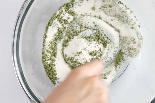 Trộn cùng sữa bột cùng bột trà xanh với nhau.