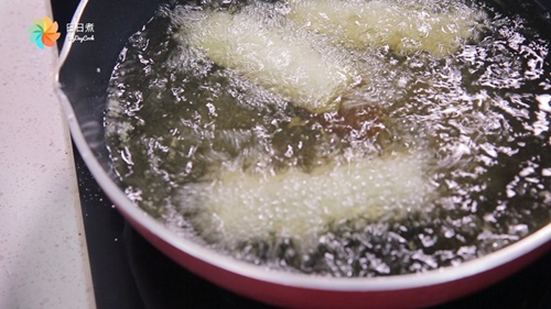 Cho chả cuốn vào chảo dầu sôi gần ngập để chiên cho tới khi vàng đều thì vớt ra thả vào đĩa có lót giấy thấm dầu.