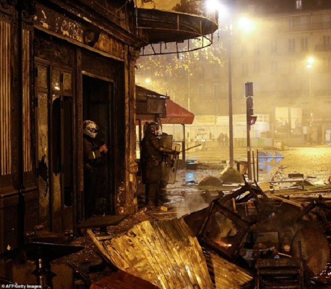 Cảnh sát Paris liên tục phải dùng hơi cay và vòi rồng để giải tán các thành phần cực đoan. Theo số liệu mới nhất, 412 người đã bị bắt giữ trong các cuộc bạo loạn, 133 người bị thương, trong đó có 48 nhân viên an ninh. Chính quyền Pháp không loại trừ khả năng ban bố tình trạng khẩn cấp.