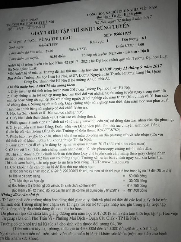 Hai năm trước, Sùng Thị Chấu (sinh năm 1999) nhận kết quả báo đỗ Đại học Luật Hà Nội với 28,5 điểm - là thí sinh duy nhất của toàn huyện Quản Bạ, Hà Giang có điểm thi đại học trên 20 điểm. Chia sẻ tin vui với gia đình, Chấu nhận lại nỗi buồn khôn tả vì bố mẹ "chẳng hiểu đỗ đại học là gì", anh trai thì bảo "đừng đi học nữa, ở nhà chăn dê thôi".