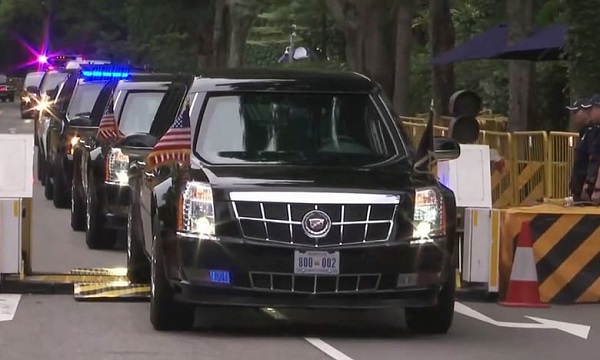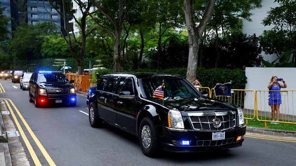 Đoàn xe của ông Donald Trump hướng về cuộc gặp lịch sử giữa hai nhà lãnh đạo Mỹ, Triều - Ảnh: Reuters. |