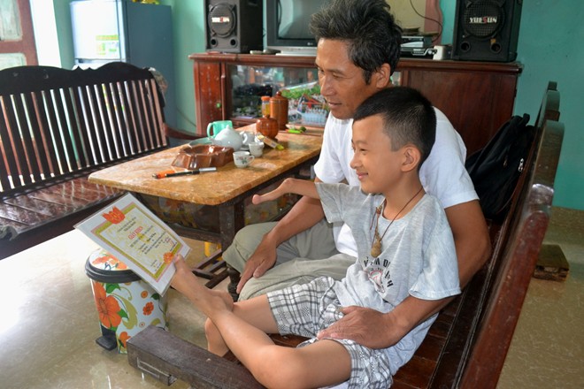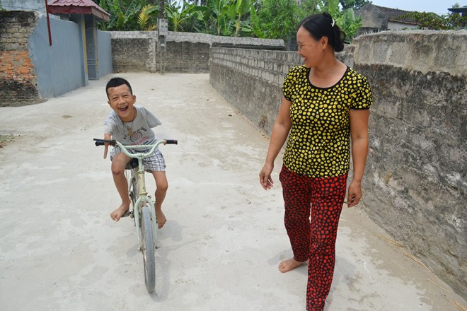 Ngoài giờ lên lớp, Hưng còn biết phụ giúp bố mẹ nhiều việc như quét nhà, rửa bát…Lên lớp 2, thấy bạn bè trong xóm đi xe đạp. Cậu về nhà nằng nặc đòi bố mẹ mua 1 chiếc để tập đi. “Ban đầu, tôi mua cho cháu chiếc xe có thêm 2 bánh sau hỗ trợ vì sợ cháu ngã. Tập được thời gian, cháu bắt tháo ra để đi bình thường như bạn bè. Không ngờ là cháu lại đi được khiến ai cũng ngỡ ngàng”, người bố nhớ lại. |