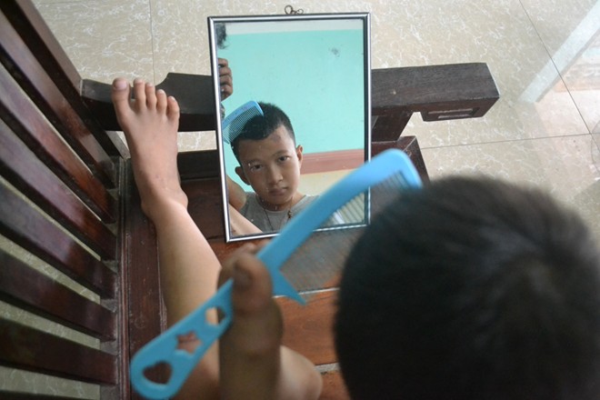 Tuy nhiên, khi lớn lên, cậu bé có thể tự sinh hoạt cá nhân như đánh răng, tắm, chải tóc với đôi chân khéo léo của mình. (Minh họa theo zing.vn) |