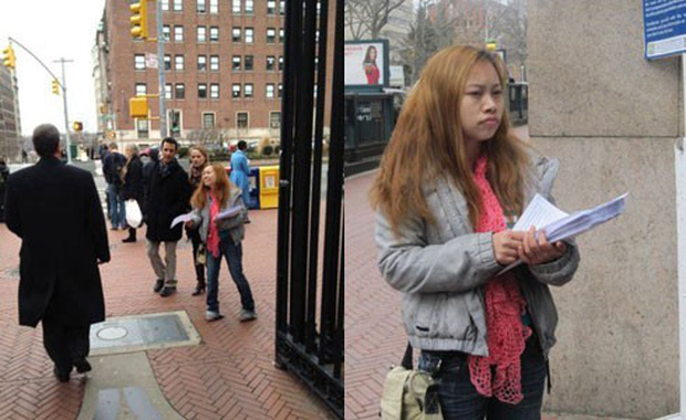 Phượng Tỷ còn khiến công chúng sốc hơn khi tới địa điểm ga tàu điện của Thượng Hải, phát 1300 tờ rơi để tuyển chồng. |