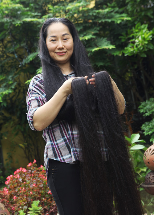 | Mái tóc dài, mượt và thẳng của chị Lan |