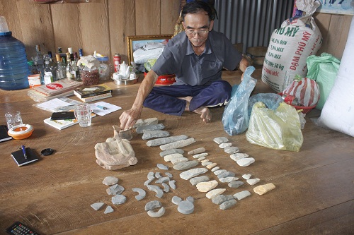 Ông Vinh chia sẻ: “Tôi đến với các cổ vật này như một cái duyên tình cờ, không ngờ rằng ngay trên mảnh vườn nhà mình lại tồn tại nhiều dấu vết của người tiền sử đến như vậy. Trong quá trình tìm kiếm, tôi phát hiện những cổ vật nằm rải rác khắp nơi, ở các rẫy lân cận. Nhưng, các hiện vật lại tập trung ở vườn nhà tôi nhiều nhất. Có thể, trước đây khu vực này là một công xưởng chế tác các công cụ đồ đá của người tiền sử”.