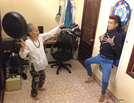 | Đôi khi bà của Giang Popper cũng không ngại chụp ảnh hài hước với cháu trai |