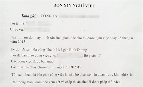 Hôm nay tôi viết đơn này mong cấp trên cho tôi được thôi việc từ ngày 01/03/2016.