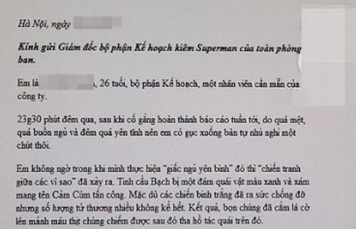 Kính gửi Giám đốc bộ phận Kế hoạch kiêm Superman của toàn phòng ban...