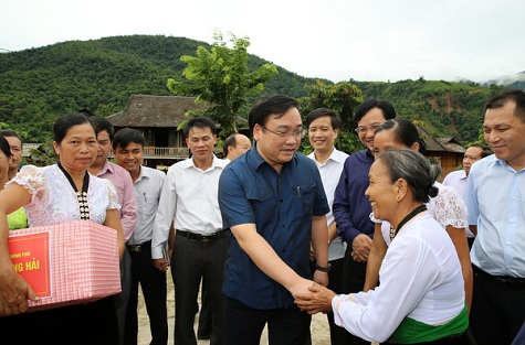 Phó Thủ tướng đã lên xã tái định cư Lê Lợi, huyện Nậm Nhùn, tỉnh Lai Châu, vào nhà thăm hỏi cuộc sống bà con dân tộc của địa bàn vùng cao, được coi là địa bàn đặc biệt khó khăn này.