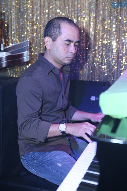Nhạc sĩ Đức Trí đệm đàn cho Hồ Ngọc Hà. |