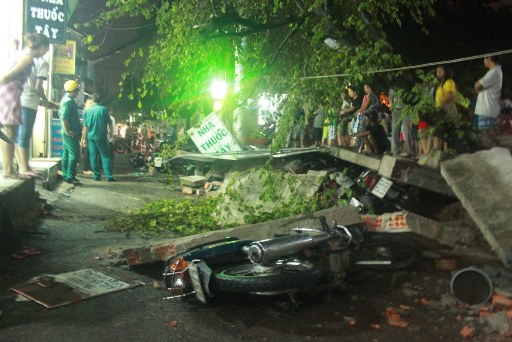 Cuồng phong quét qua TPHCM, tường sập. Ảnh: Dân trí |