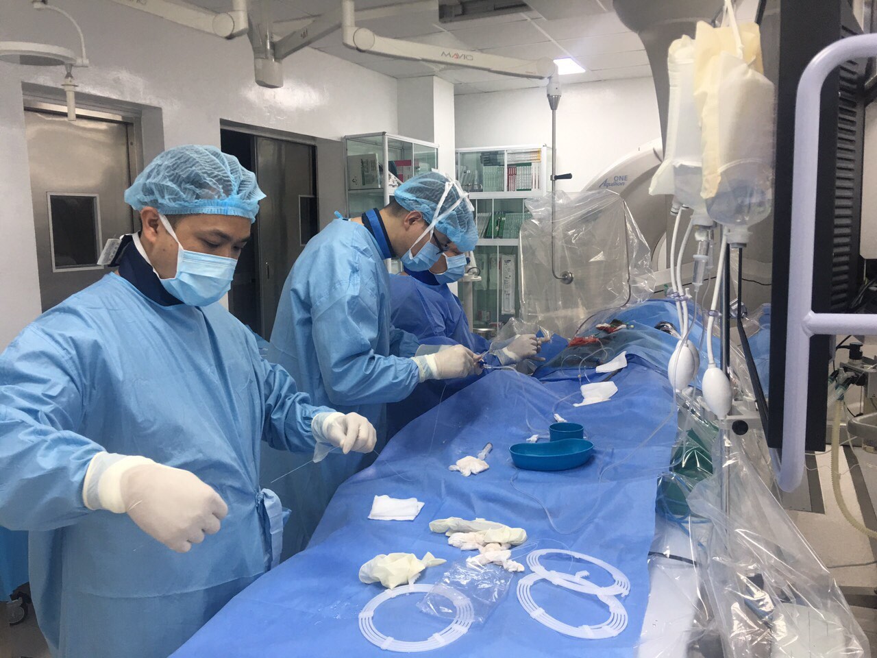 Kíp bác sĩ Bệnh viện Vinmec Times City đã can thiệp mạch não điều trị đột quỵ 2 lần liên tiếp cho người bệnh thành công. |