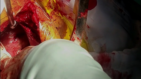 Bác sĩ Nguyễn Kim Anh, Trưởng khoa Lồng ngực - Mạch máu của bệnh viện cho biết trong quá trình mổ khảo sát, gặp sự cố tràn máu màng tim, các bác sĩ hút ra được đến 0,5 lít máu. Sau đó ,máu vẫn tiếp tục chảy ra ở vết thương theo nhịp bóp của tim, tương đồng với kết quả siêu âm nhận định trước mổ. Các bác sĩ đã khâu vết thương và cầm máu thành công - theo Dân Việt.