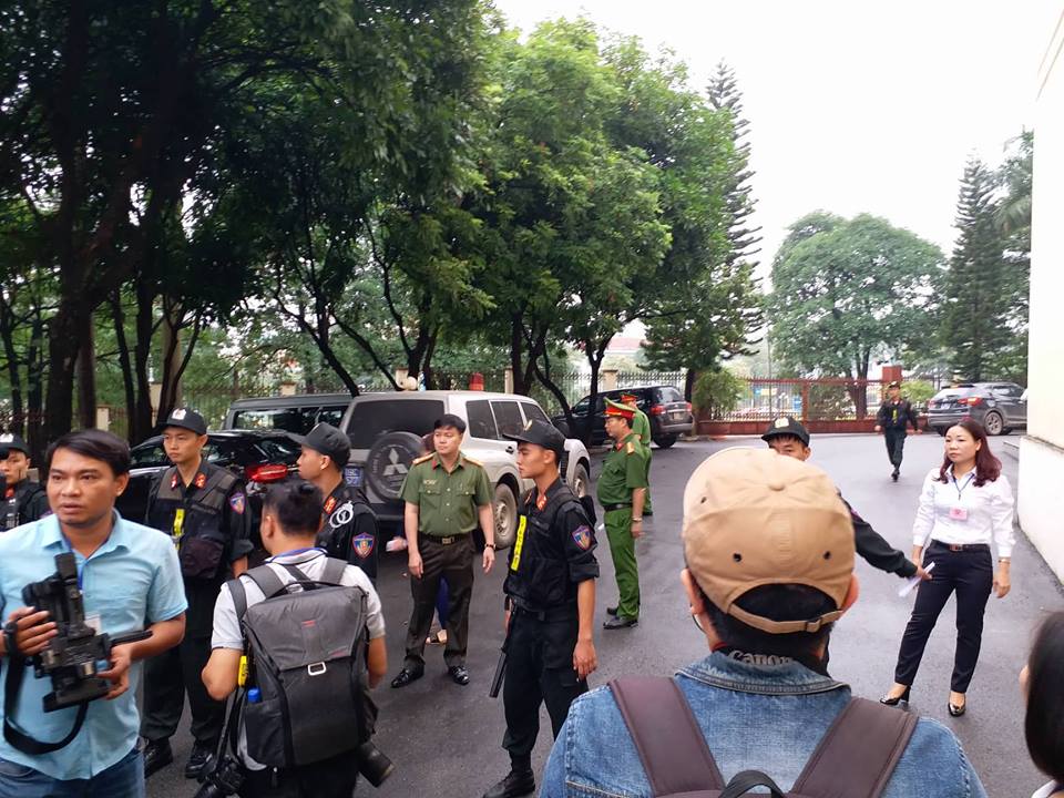6h00: Rất đông phóng viên tới đưa tin phiên tòa. Lực lượng an ninh, cảnh sát hỗ trợ tư pháp cũng được điều động tới rất đông để đảm bảo công tác an ninh trật tự diễn ra trong suốt quá trình xét xử.