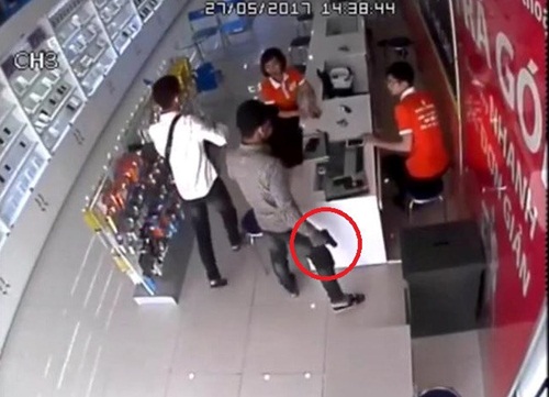 Theo hình ảnh camera ghi lại được, thời điểm trên có hai nam thanh niên đeo khẩu trang, một người mang theo một vật nghi là súng, người còn lại mang theo dao de dọa, khống chế các nhân viên đang bán hàng tại đây để cướp tài sản. Sau khi lấy đi nhiều chiếc điện thoại, hai thanh niên nhanh chóng lên xe máy tẩu thoát.