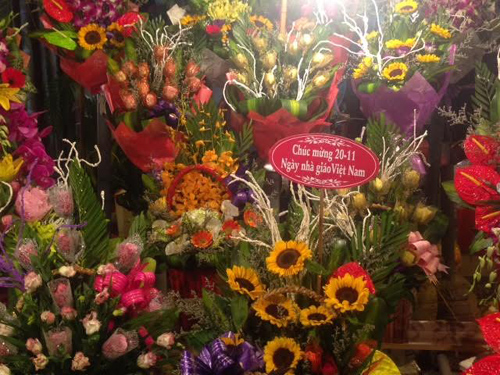 Chủ shop hoa Nguyệt Nga trên đường Cầu Giấy chia sẻ: “Trước dịp chính lễ khoảng 1 tuần là lượng khách hàng đã tăng đáng kể, chủ yếu là mua những lẵng hoa to để làm quà tặng cho các trường học, còn hôm nay thì chủ yếu là những bó hoa hay lẵng bé để tặng cá nhân, giá hoa giao động mỗi bó từ 200 nghìn đến 400 nghìn đồng tùy loại, còn nếu muốn sang hơn thì là hoa nhập khẩu, tùy theo yêu cầu khách hàng.”