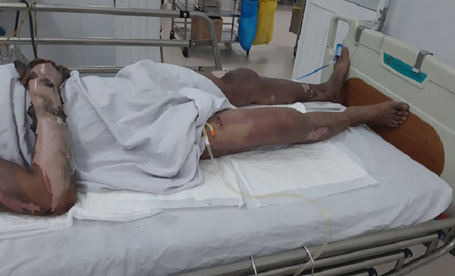 anh Năm bị bỏng điện ở mức 70 - 75 % cơ thể. Ảnh: TN. |