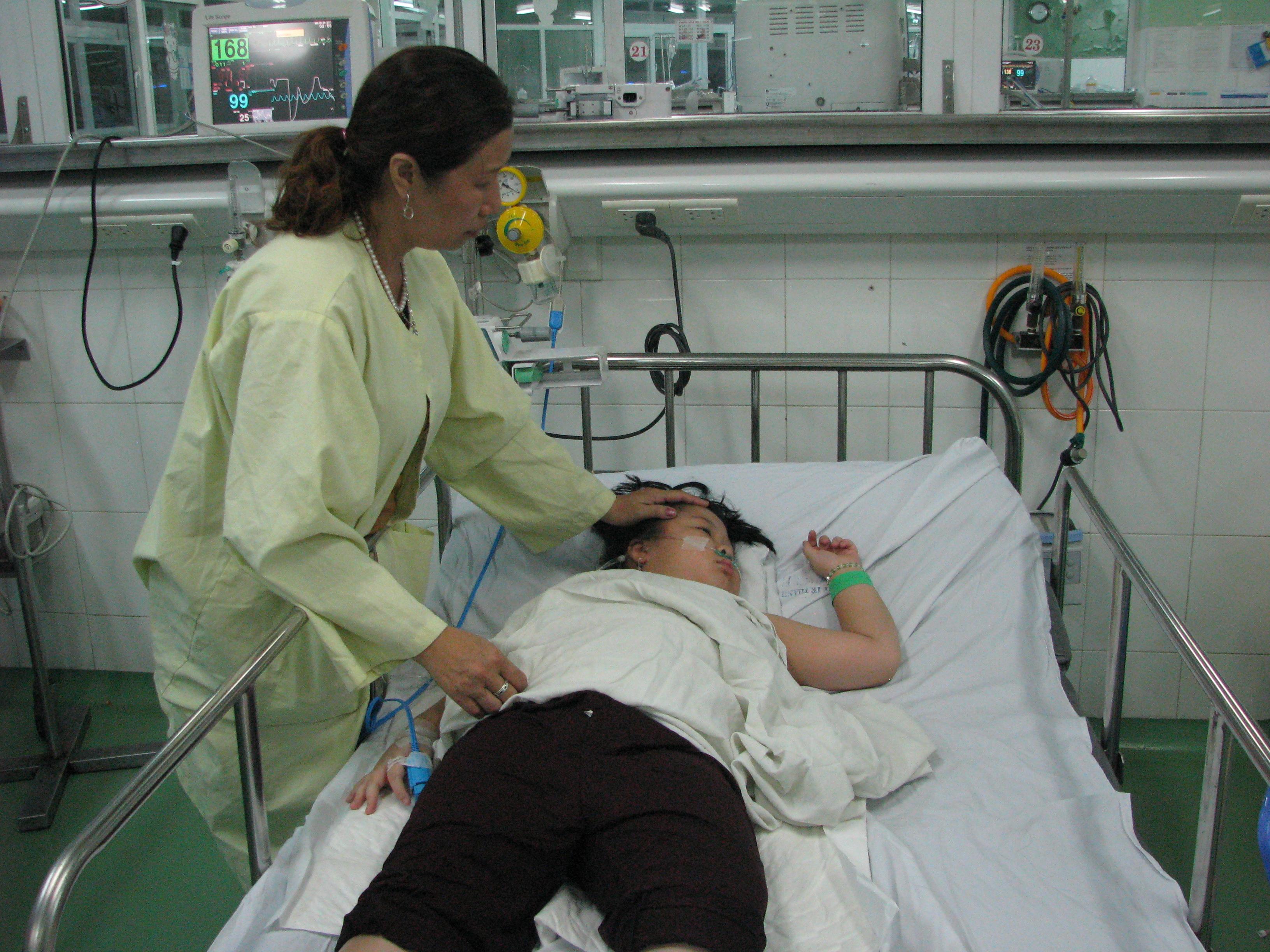 Vợ con anh Phạm Tấn Cường điều trị tại bệnh viện sau tai nạn lật tàu trên sông Hàn. Ảnh: Dân trí. |