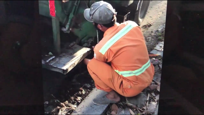 Người công nhân bị phát hiện lén xả nước rỉ rác xuống cống - Ảnh chụp màn hình. |