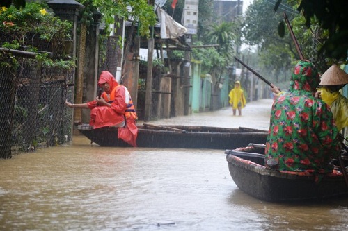 Người dân xã Đại Nghĩa, huyện Đại Lộc (Quảng Nam) dùng ghe di chuyển trong lũ. Ảnh: Tuổi trẻ. |