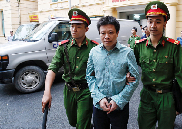 | Cựu chủ tịch OceanBank Hà Văn Thắm bị dẫn giải vào phòng xử nghe tuyên án - Ảnh: Vnexpress |