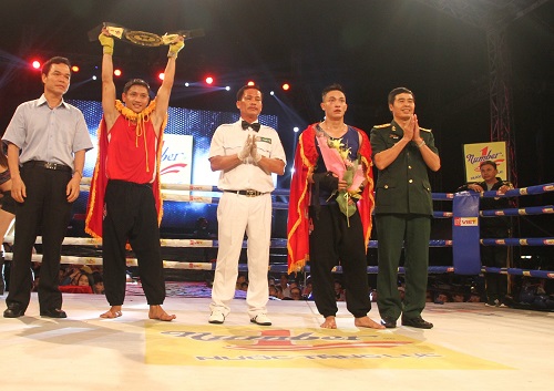 Hàng ngàn khán giả Quảng Ngãi mặc cho những cơn mưa lớn vẫn có mặt ở quảng trường trung tâm của thành phố Quảng Ngãi để cổ vũ cho võ sĩ ưu tú của tỉnh nhà thi đấu.