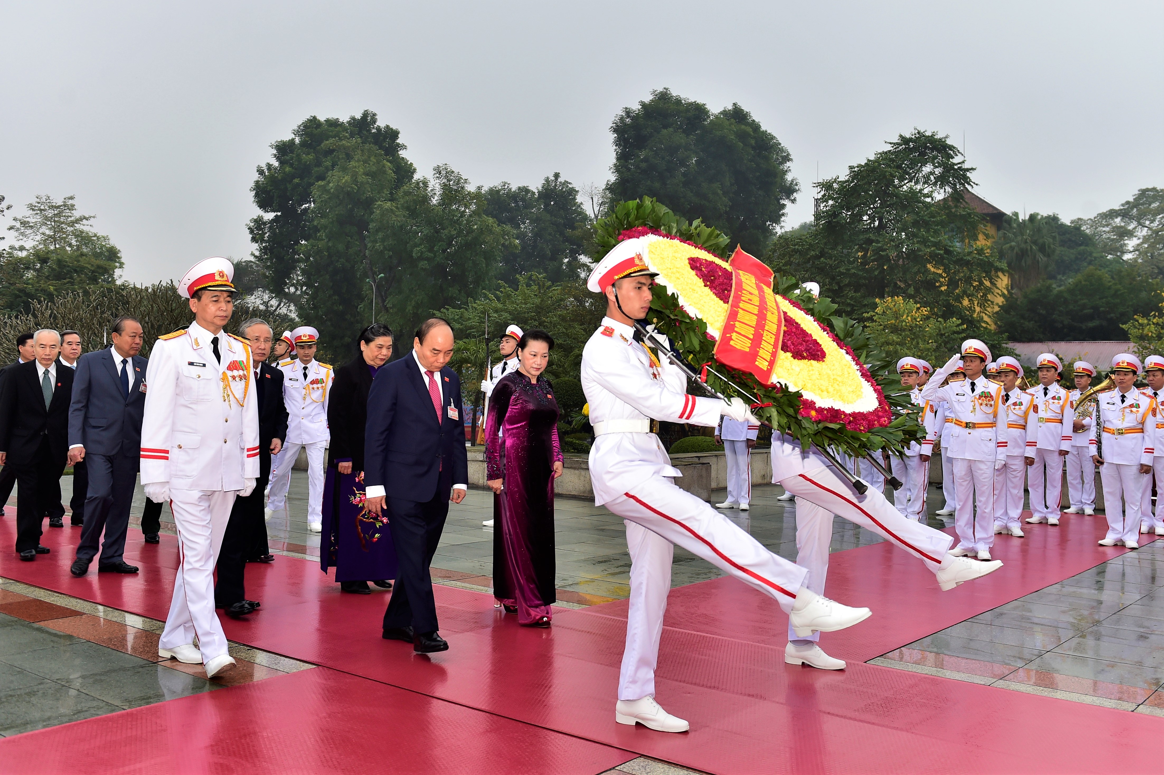 Sáng 25/1, trước giờ khai mạc phiên họp trù bị Đại hội đại biểu toàn quốc lần thứ XIII của Đảng, các đồng chí Ủy viên Bộ Chính trị: Thủ tướng Chính phủ Nguyễn Xuân Phúc, Chủ tịch Quốc hội Nguyễn Thị Kim Ngân; Bí thư Trung ương Đảng, Chủ tịch Ủy ban Trung ương Mặt trận Tổ quốc Việt Nam Trần Thanh Mẫn cùng các đồng chí Ủy viên Bộ Chính trị, Bí thư Trung ương Đảng và đại biểu dự Đại hội đại biểu toàn quốc lần thứ XIII của Đảng đã đặt hoa, vào Lăng viếng Chủ tịch Hồ Chí Minh - Người sáng lập và rèn luyện Đảng ta, lãnh tụ vĩ đại của Đảng và dân tộc Việt Nam.