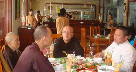 Ông Vũ trong một lần gặp gỡ các chư tăng. |