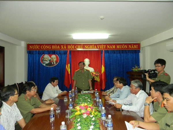 Phó giám đốc công an tỉnh Quảng Nam chủ trì buổi trao lại cổ vật cho ông Nguyễn Mười (Ảnh: Vietnamnet) |