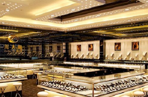 Các cửa hàng kinh doanh vàng bạc, đá quý thương hiệu Chow Tai Fook. |