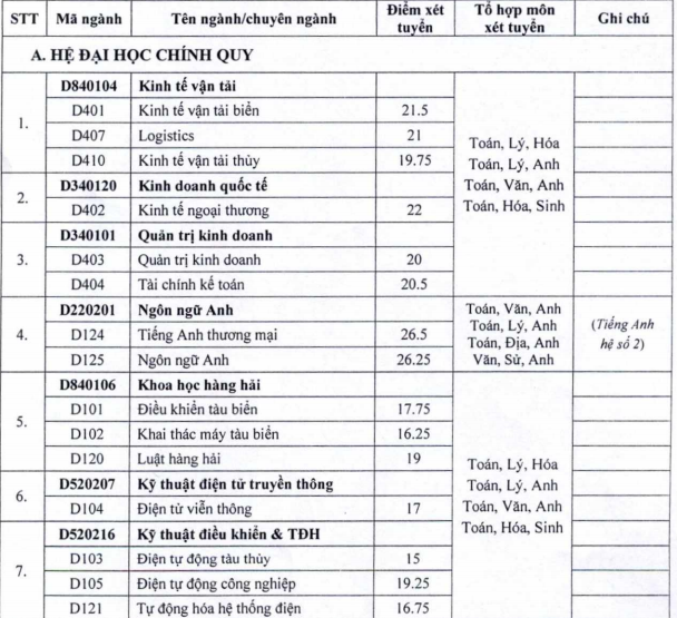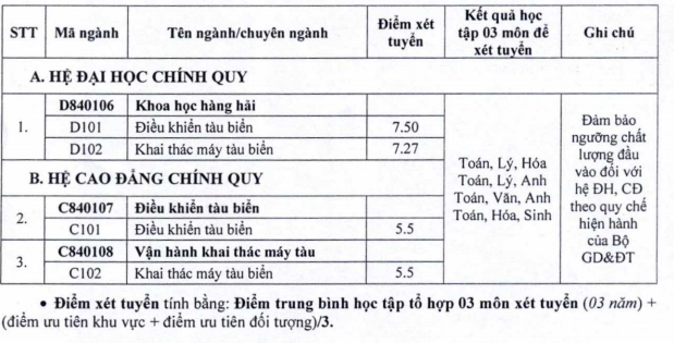 Điểm trúng tuyển vào Đại học Hàng hải dựa trên học bạ THPT |