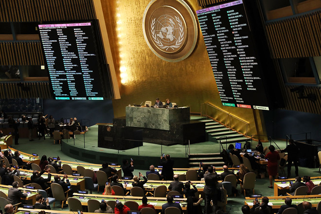 Nghị quyết không mang tính ràng buộc này đã được thông qua với 128 phiếu thuận, 9 phiếu chống và 35 quốc gia không bỏ phiếu.